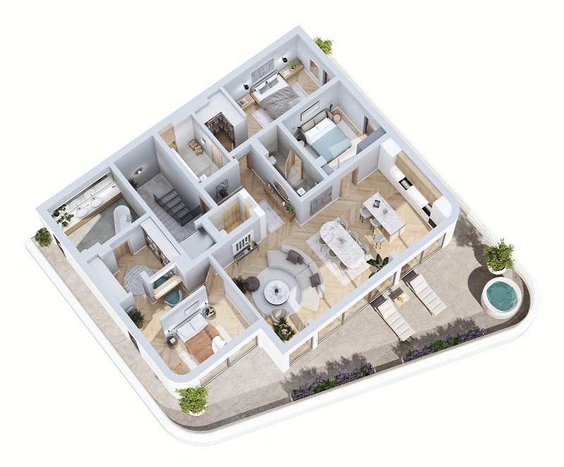 O Residences consists of 12 luxurious apartments, offering a variety of layouts to suit different lifestyles. From cozy 2nd home solutions, perfect as a lucrative investment, to spacious multi-bedroom apartments ideal for families, the development is designed with modern living in mind. With a focus on quality, sustainability, and comfort, every detail of the project ensures a living experience like no other.